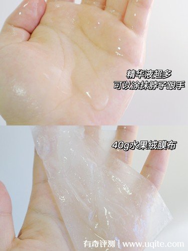 昆藥面膜的精華液很多我每次敷完以后,袋子里面都還剩不少,所以就會(huì)把它們涂抹在脖子和手上。而且這款昆藥面膜的膜布是水果絨的質(zhì)地,看著就挺清透水潤的,上臉貼敷也是冰冰涼涼的非常的輕薄,不會(huì)有悶?zāi)樀母杏X。