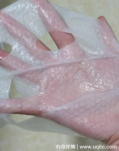 ISHIBUYALAB面膜的膜布非常的輕薄,展開以后上面是可以清楚的看到一些小孔的,而且面膜的味道很好聞,上臉貼敷也飛度的是否,既透氣有很有質(zhì)感,不會有悶?zāi)樀那闆r。