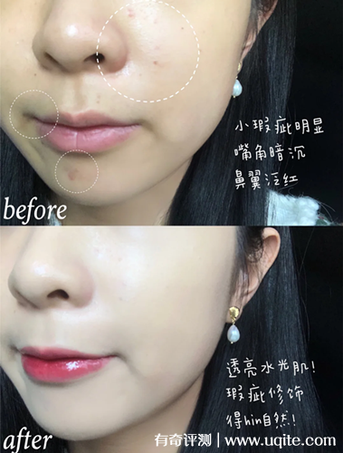 而且上臉使用這款海馬體粉底液它的遮瑕效果挺不錯(cuò)的,像一些暗沉膚色不均勻的現(xiàn)象它都可以協(xié)調(diào)好。并且這款海馬體粉底液的妝感很輕薄,不會(huì)有悶?zāi)樀那闆r。至于持妝效果,我從早上八點(diǎn)帶妝,然后到下午七點(diǎn),除了出油的鼻翼臉部有點(diǎn)脫粉現(xiàn)象以外,整個(gè)妝容依舊很服帖,尤其是妝面不黑,看著就很舒服。