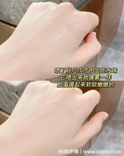 使用時(shí),這款悅麗雅噴霧的噴頭很靈活,按壓起來很方便,而且噴出來的水霧很細(xì)膩,完全不會(huì)形成大顆的水珠,上臉使用就算不按摩也能被吸收。悅麗雅噴霧的保濕補(bǔ)水效果挺高的,用完以后肌膚水分感會(huì)明顯增強(qiáng)。
