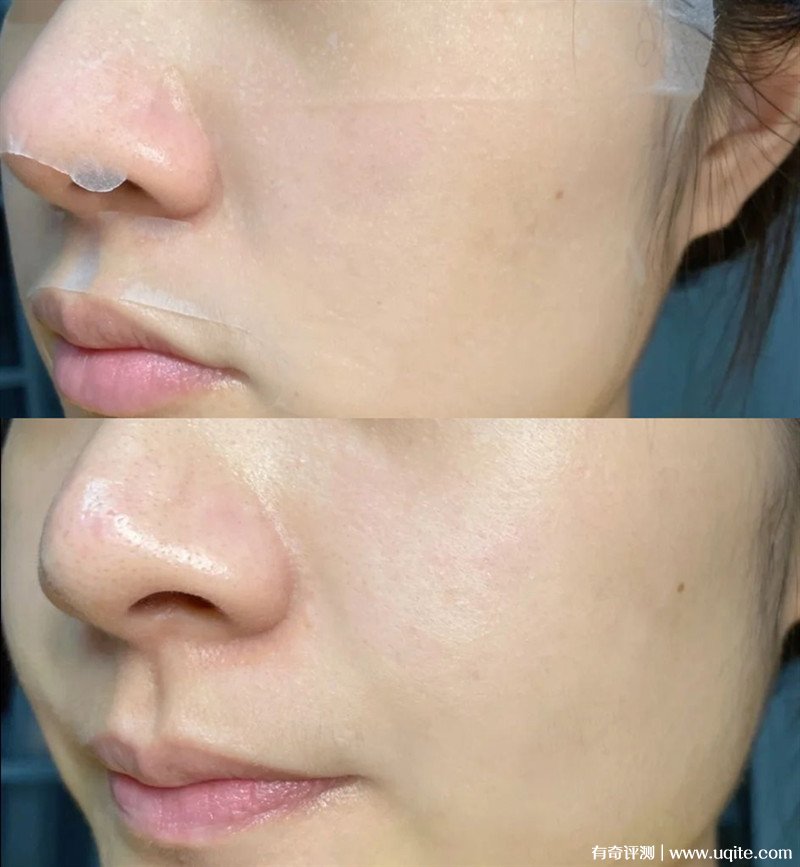 它用完后皮膚蠻水嫩飽滿的,視覺上透亮了些,補(bǔ)水保濕效果很好。我習(xí)慣用了面膜后洗臉,但隔天皮膚都還是很嫩很細(xì)膩,而且皮膚彈性有增加點(diǎn)。