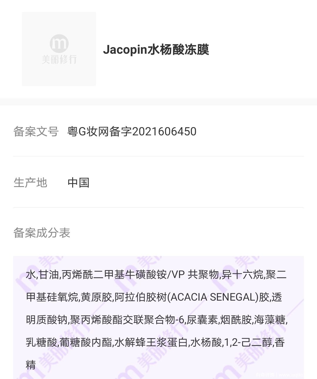 jacopin水楊酸凍膜我是在抖音上種草的,因?yàn)榭唇榻B它是屬于入門級的產(chǎn)品,水楊酸濃度不高,我又一直有想試試刷酸,就買了盒。