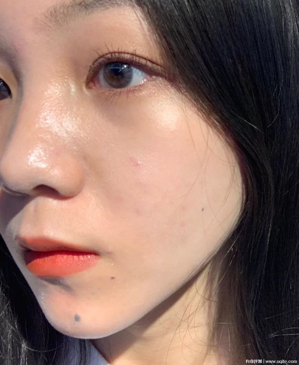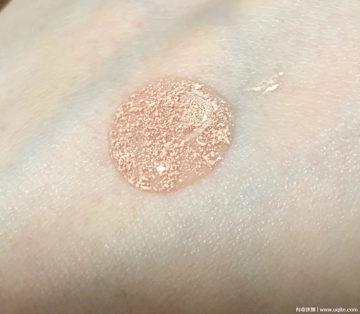 美肌顏泡泡水粉底液的質(zhì)地很水潤(rùn),流動(dòng)性很強(qiáng),水分感很足,里面還有一點(diǎn)小微晶顆粒,上臉也很好推開,揉開它就變成了白色,顏色很自然,不假白,上臉服帖,沒有厚重感,不悶。有一點(diǎn)修飾膚色的作用,但不是很明顯的那種,貼合本身膚色,不假,皮膚好的姐妹感覺只涂它都?jí)?,均勻下膚色(如果是瑕疵嚴(yán)重的,可以要繼續(xù)疊加,遮瑕效果一般)。