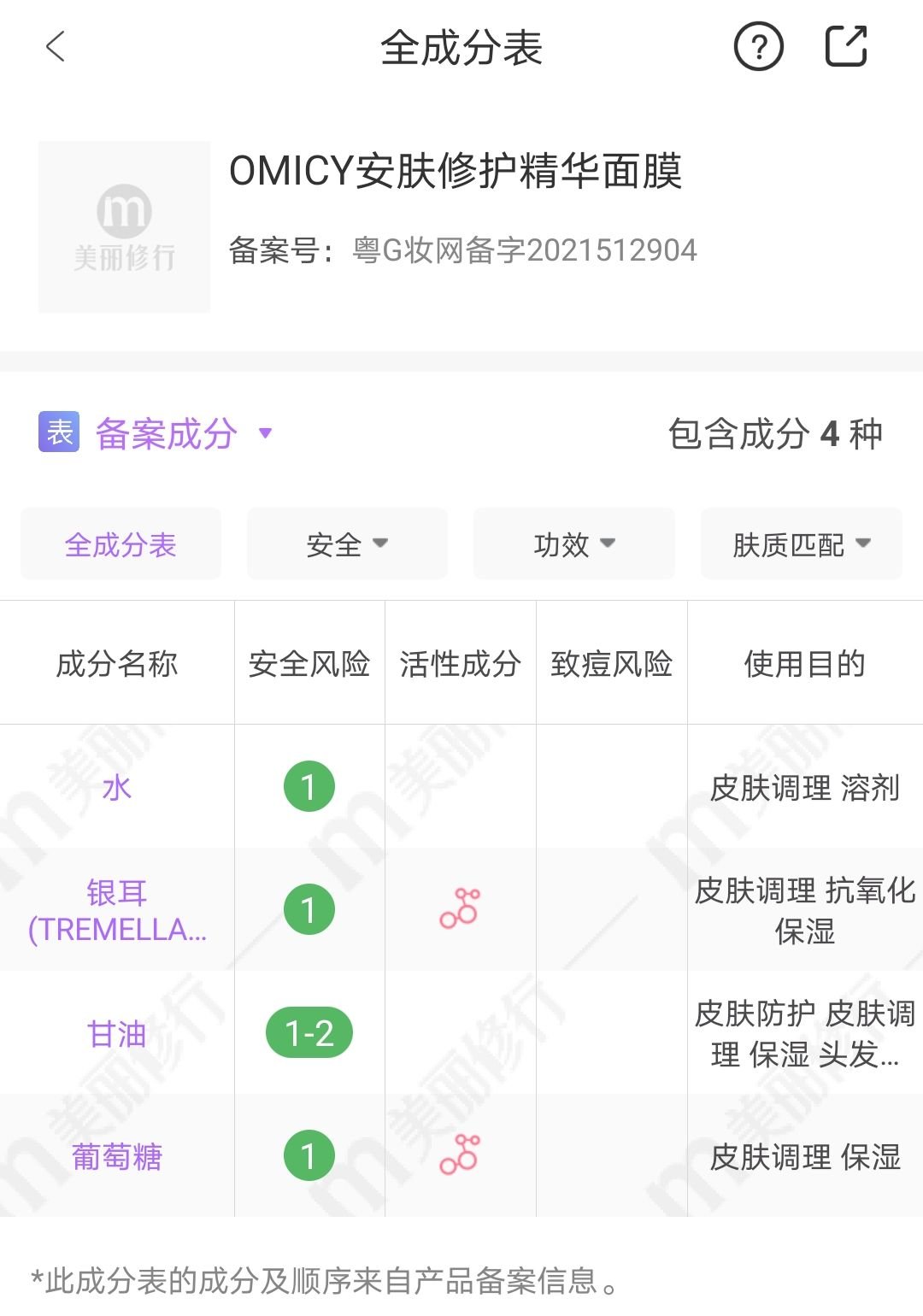 無敏氏(OMICY)是一個專注敏感肌膚護膚產(chǎn)品研發(fā)的品牌,致力于通過自然植萃和分子科技研發(fā)實現(xiàn)敏感肌深度修護。雖然品牌知名度目前不高,但品牌是正規(guī)品牌,產(chǎn)品在國家藥品監(jiān)督管理局也都有備案,符合生產(chǎn)標準,可放心使用。憑借著溫和安全的特點,產(chǎn)品也受到了不少消費者的關(guān)注和喜愛,面膜是最受歡迎的產(chǎn)品之一。成分純凈天然,不含香精、防腐劑以及其他風險成分,主打舒緩褪紅、修護功效。下面一起來具體看看無敏氏面膜怎么樣。
