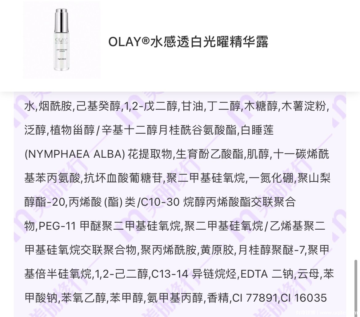 OLAY光感小白瓶是滴管的設(shè)計(jì),用著還蠻方便的,它打開之后的味道聞著不錯(cuò),香味淡淡的,不刺鼻,用著也還蠻溫和的,我用完之后臉上也沒有出現(xiàn)什么過敏不適的情況,我也在網(wǎng)上查了一下它的成分,是溫和安全的,沒有添加刺激皮膚的成分。