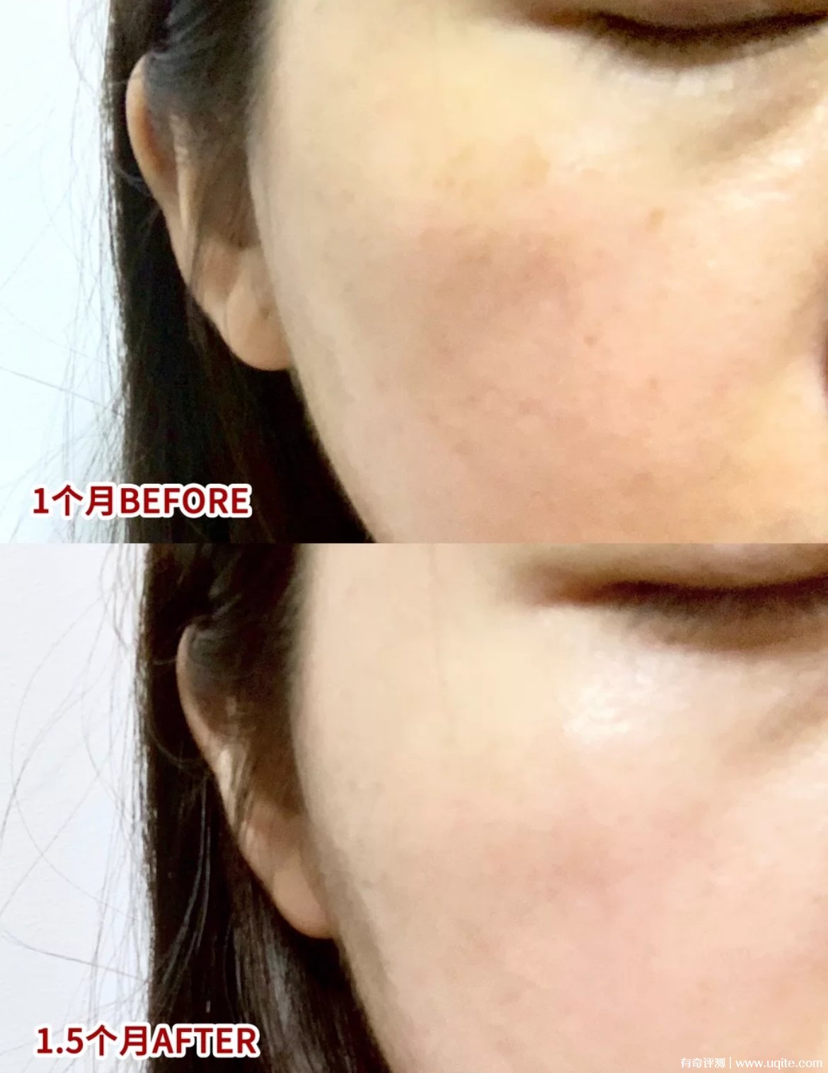 美綠思美白祛斑霜我開始用了差不多一個(gè)月左右的時(shí)間了,臉部暗沉的情況好了很多,整個(gè)人氣色看著也好了不少,可以很明顯的看到一些小斑點(diǎn)在慢慢的淡化了,用到現(xiàn)在我一瓶快用完了,一些小斑點(diǎn)淡的七七八八的,深一點(diǎn)的斑點(diǎn)雖然還有,但顏色也在慢慢的變淡了,這個(gè)效果我還蠻滿意的。