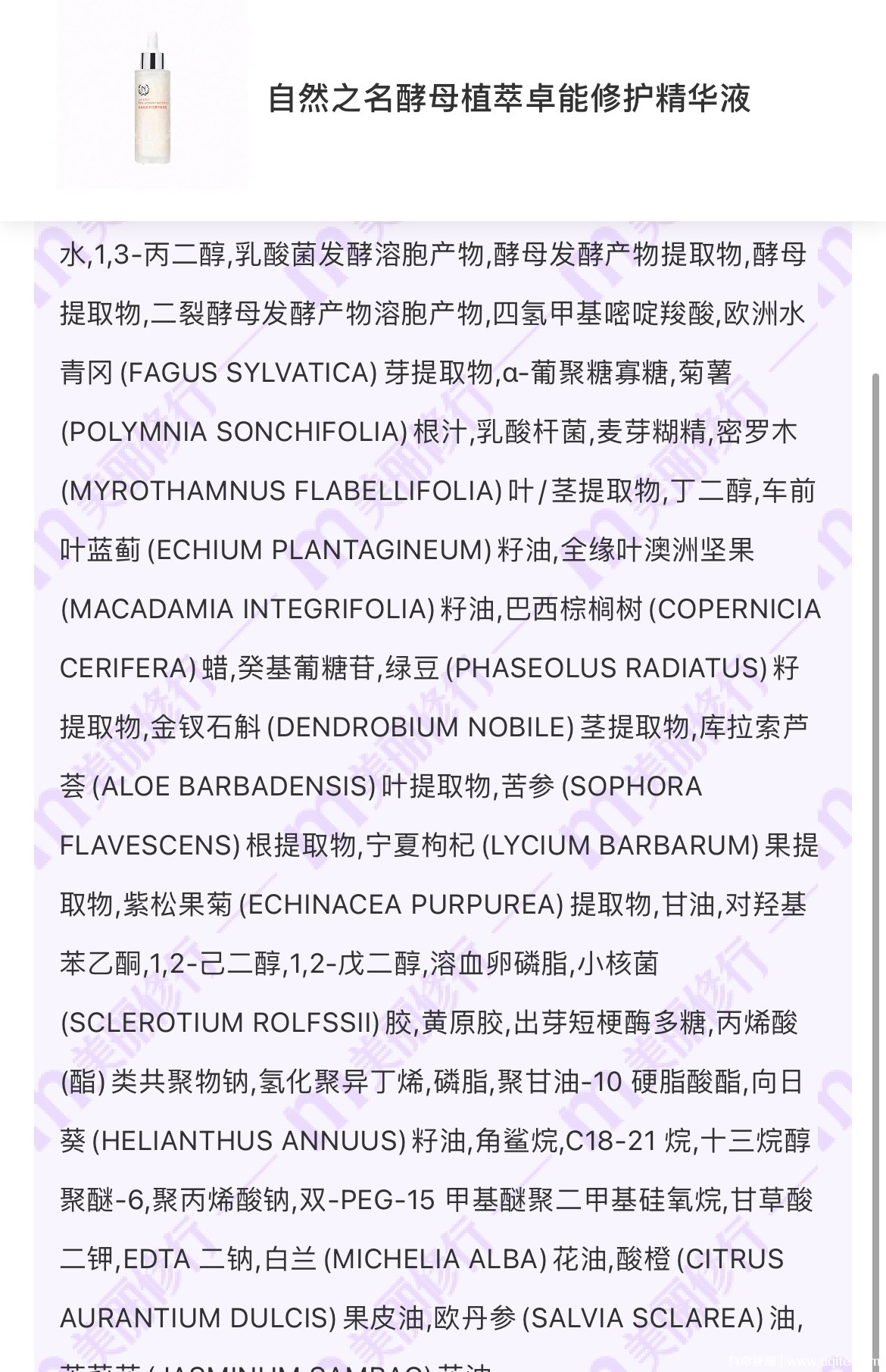 自然之名酵母精華到手之后還送了很多贈品,它打開之后味道比較淡,我也在美麗修行上查了一下它的成分,還是蠻溫和安全的,沒有添加什么刺激的成分,敏感肌用也OK。