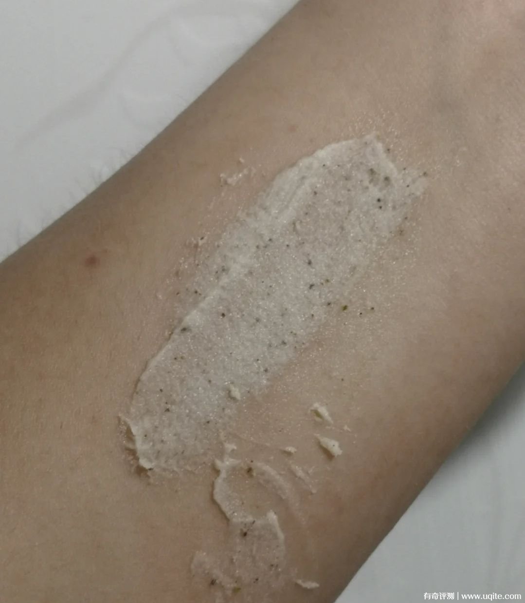 阿芙荷荷巴面膜味道聞起來(lái)是清新的薄荷香,挺上頭的。上臉也舒服,涼涼的。土豆泥質(zhì)地,里面有些顆粒,好推開,因?yàn)椴皇悄嗄ゎ愋?,上臉不?huì)緊繃,自由做表情沒問(wèn)題。清洗也方便用清水多沖沖就行。