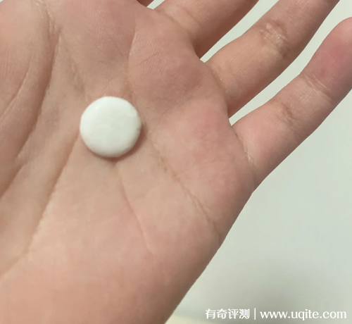這款賦皙寡肽凍干片是板裝設(shè)計(jì),一盒里面是一板,然后一板里面有十粒凍干片。拆開以后,凍干片是圓白色的,聞著沒有什么氣味,看著就挺不錯(cuò)的樣子。