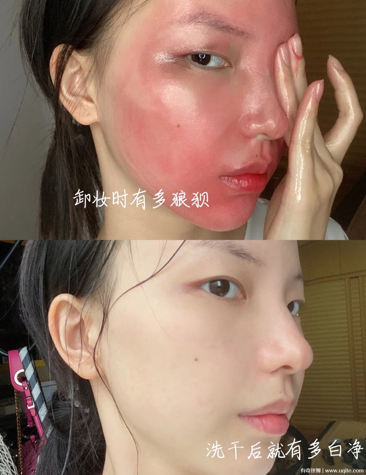 OAM卸妝油的卸妝效果也挺好的,通常粉底液和防曬之類的,隨便揉一揉就溶解了,彩妝的話,像眼妝、內(nèi)眼線這些,稍微按摩按摩,也沒問題,用完后干干凈凈的(不辣眼睛,進(jìn)眼睛也沒事)。