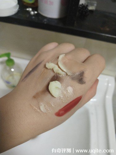 悅慕心情卸妝膏的卸妝效果挺好的,隨便揉一揉,彩妝就溶解了,用在眼周和嘴巴也都沒問題,卸得很干凈。乳化速度快,遇水就變白了。沖洗也方便,多沖會,沒有油膩和緊繃感,不需要再用洗面奶。