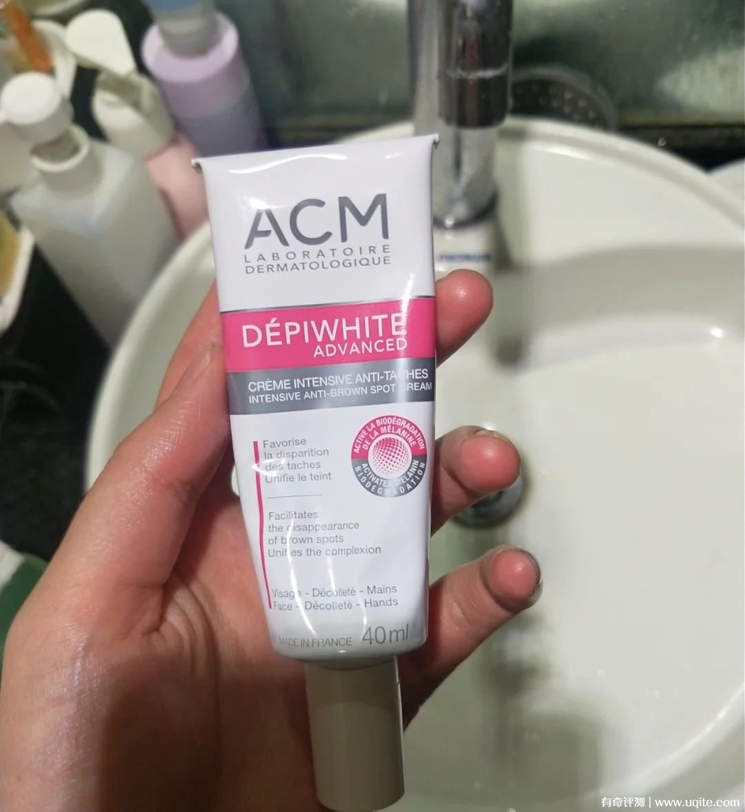 雖然這種美白淡斑產品都說要很久才能看出效果,但ACM淡斑精華霜用著感覺還算快,用了一個多月兩個月不到的樣子,斑點明顯變淺了。我感覺它對痘印效果更好,我下巴反反復復長痘,特容易留印,之前的一個老痘印,用了半個月左右就沒了(之前三個月都沒消)。