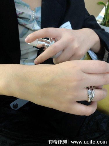 古樂(lè)妃精華水質(zhì)地是流動(dòng)性強(qiáng),它是屬于比較清爽的,噴在臉上不油膩,一會(huì)就吸收了,用完之后皮膚軟軟的,看著很有水分感。