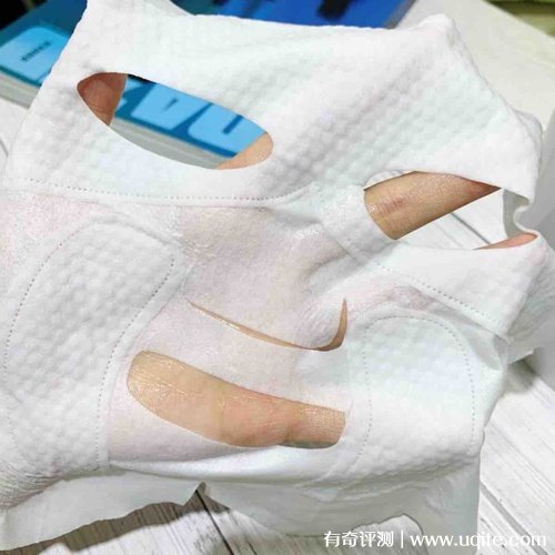 這款肌侶面膜的膜布設(shè)計(jì)形式還挺特別的,它在眼周和鼻翼兩邊都多加了一層膜布設(shè)計(jì),底部一層膜為蛋白軟膜,材質(zhì)就挺不錯(cuò)的,拉扯之后都不會(huì)有變形的情況。而且眼周和鼻翼兩邊加厚的一層膜為復(fù)合膜,能夠雙重鎖水,并且有緊致細(xì)膩肌膚的效果、