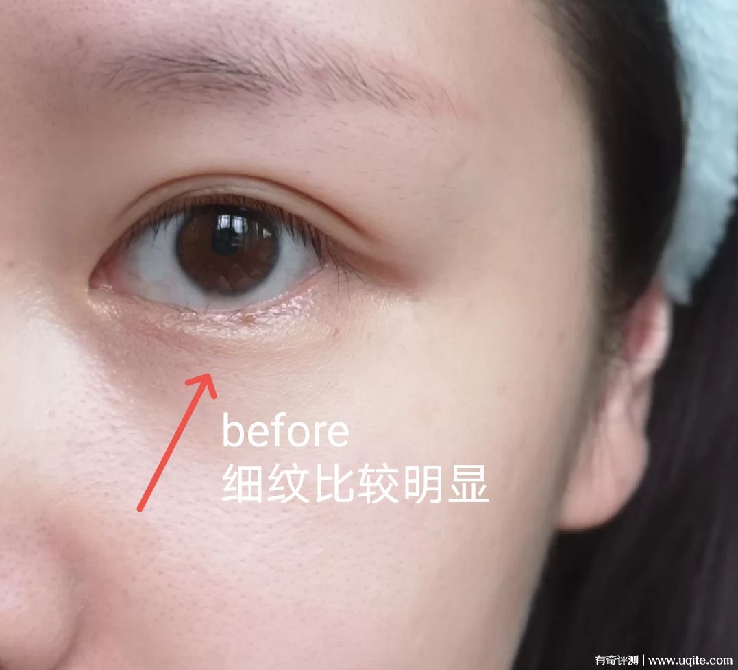 我之前因?yàn)檠鬯玫蒙伲饕褪怯行└杉y,再就是有點(diǎn)黑眼圈,雖然沒(méi)指望它很快能有效果,但是目前也才用了半個(gè)多月,干紋淡化了些,輕微瞇眼都不怎么看得出來(lái)了,黑眼圈似乎也稍微淡化了些。