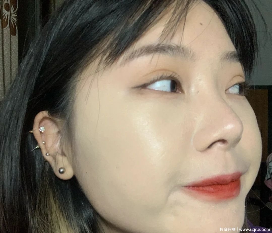 麥爾卡倫氣墊用后持妝力不錯(cuò),一天將近十個(gè)小時(shí)下來(lái),除了鼻翼有些脫妝,整體還蠻完整的,和皮膚融合度也變高了,更加自然。
