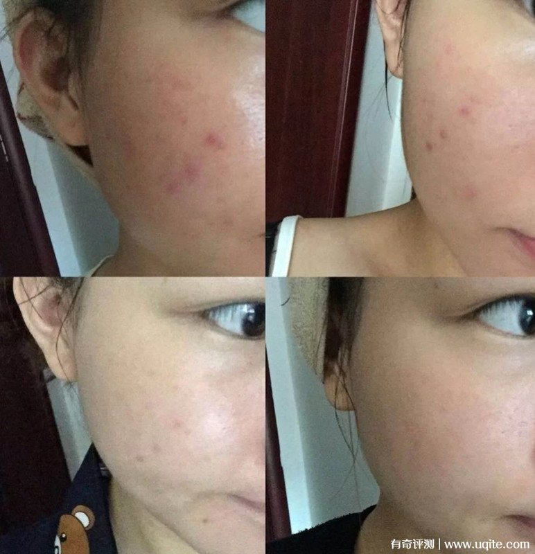 春日來信235精華用著效果還不錯(cuò),用了一個(gè)星期不到的時(shí)候,痘印就褪紅了不少,小半個(gè)月的時(shí)候,痘印小了,是那種偏黑色的,現(xiàn)在用了一個(gè)多月,痘印已經(jīng)干凈了。整體皮膚視覺上也有透亮些,看著更有氣色了(前后照片有光線影響,拍不太出來)。
