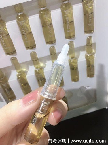 這款微詩美377精華液一盒里面是三十二支產(chǎn)品裝,份量就還挺多的。不過就是開口使用時要注意它的玻璃瓶口不要被劃傷。