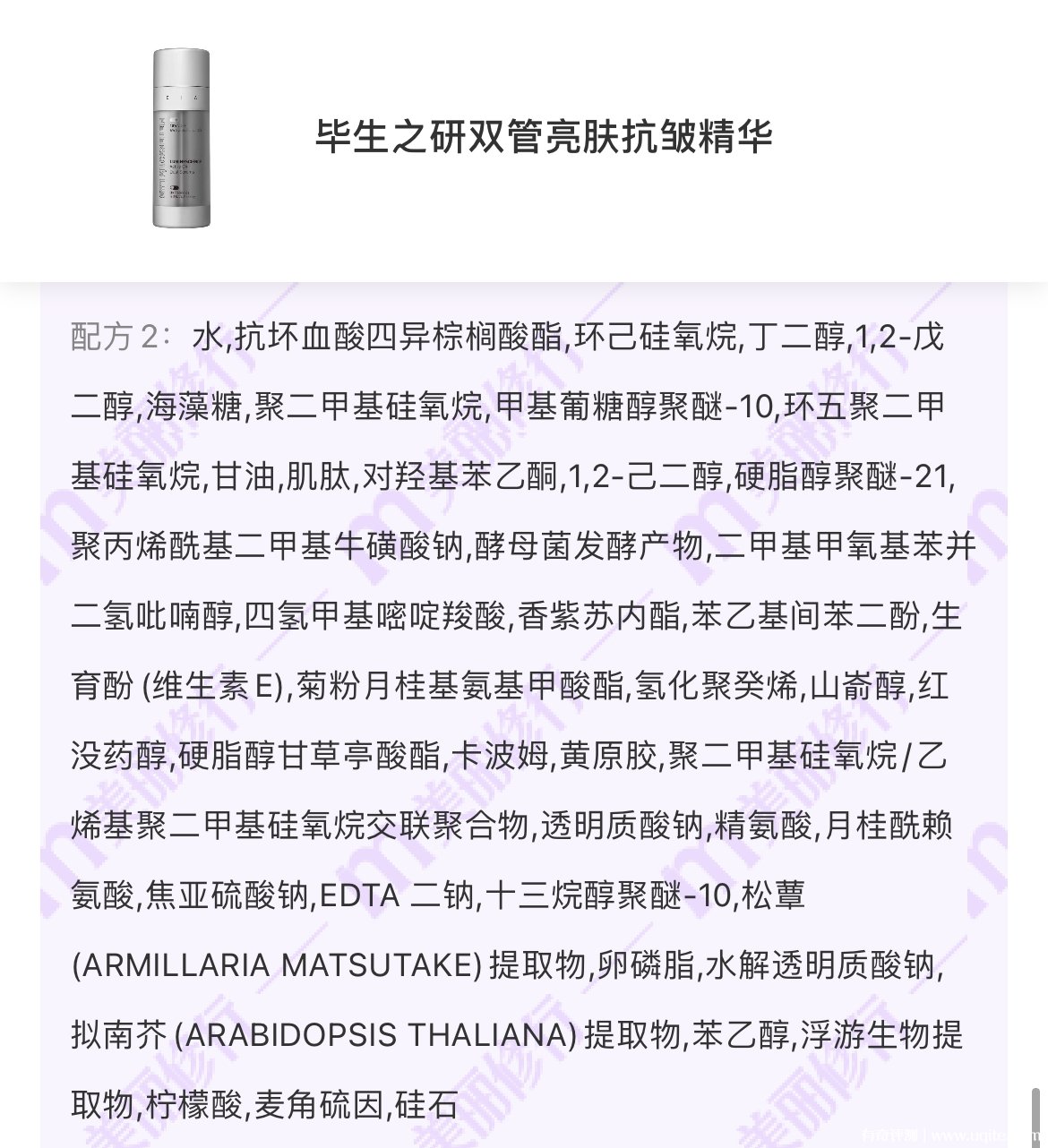 畢生之研ca瓶到手之后它還送了贈(zèng)品,它的味道來(lái)說(shuō)比較淡,不刺鼻,我也在美麗修行上查了一下它的成分,挺安全的,沒(méi)有刺激的成分。