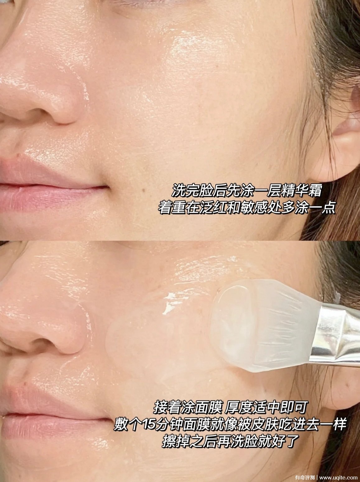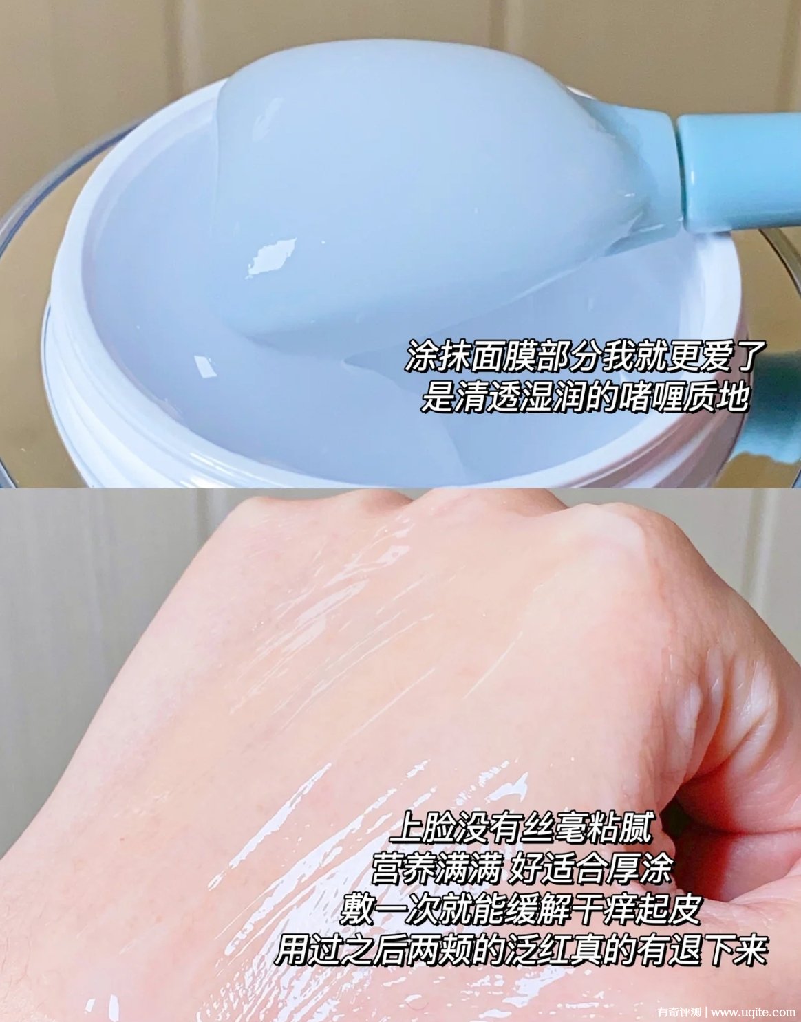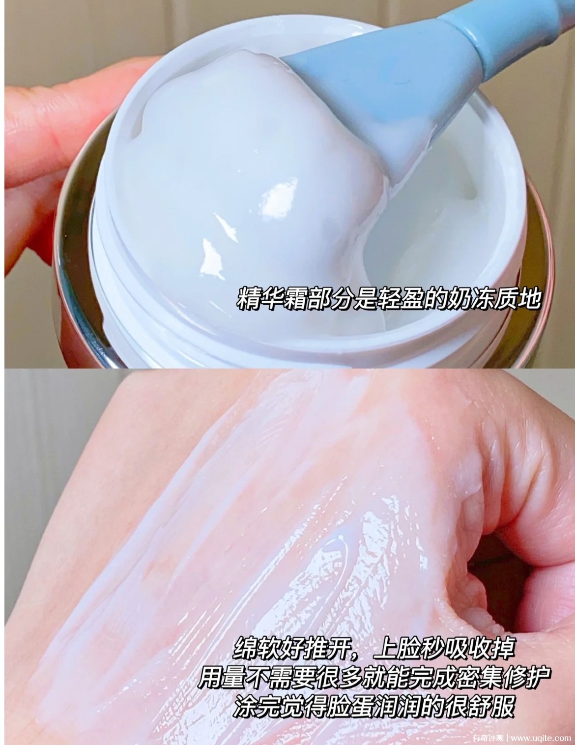 ag抗糖小藍罐面膜它是分兩層的,上面一層是精華霜,下面一層是面膜,在敷面膜之后要先涂一層精華霜。精華霜的質(zhì)地很水潤輕薄,有點想啫喱,上臉抹開就化水的感覺,不厚重,吸收也快。