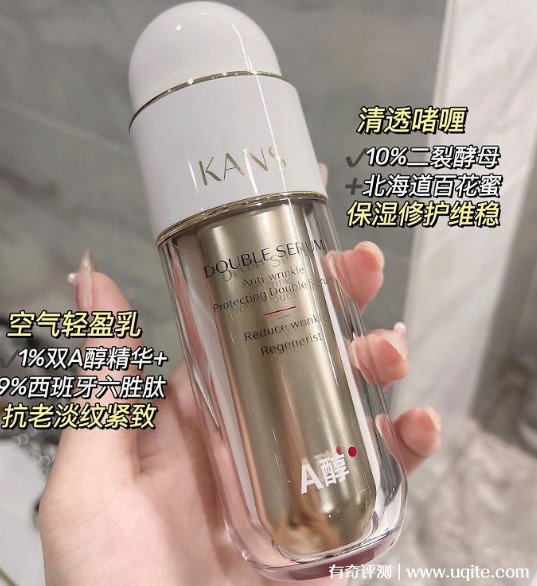 韓束的這款雙A醇精華液里,不僅有著對于肌膚護理特別有效的A醇,而且還有對于肌膚修復很棒的北海道百花蜜,一個負責緊致肌膚,一個負責舒緩保濕??偟膩碚f這款做的非常不錯,在抗老的同時還兼顧了保濕工作,性價比也是杠杠滴。