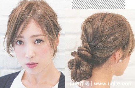 這種發(fā)型一般適合走輕熟風(fēng)的小姐姐,搭配上側(cè)分的劉海,不僅可以讓臉型看起來非常小巧精致,而且還有一種慵懶風(fēng)的感覺。步驟也非常簡單——首先梳理好全部頭發(fā),而且開始編發(fā),交叉編兩次之后用橡皮筋固定。然后再將全部頭發(fā)聚在一起扎成馬尾,變出蓬松麻花辮的形狀,最后將發(fā)尾往上環(huán)繞,將其隱藏在頭頂?shù)念^發(fā)里,整體在用發(fā)卡固定一下。