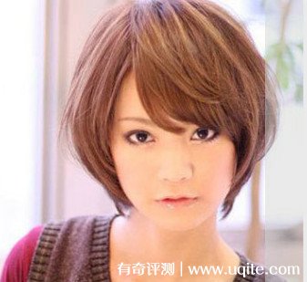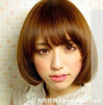 這款有著斜劉海的波波頭給人一種乖巧可愛的感覺,和上面的齊腮斜劉海造型含義相同,都是通過兩側(cè)的層次修剪和發(fā)尾內(nèi)扣的弧度來弱化國字臉的輪廓。