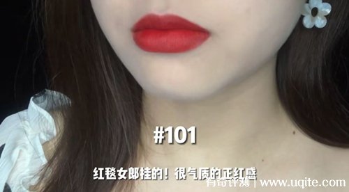 101酸甜紅莓色,厚涂薄涂都差不多,帶一點玫紅色調(diào),比較難hold,適合長相艷麗掛的,涂好了氣場全開。