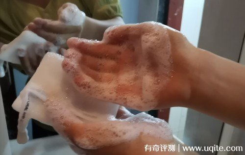 這個(gè)洗面奶流動性比較強(qiáng),泡沫也比較多,用起泡網(wǎng)輕輕松松就能弄出滿手泡泡,還挺好玩的。