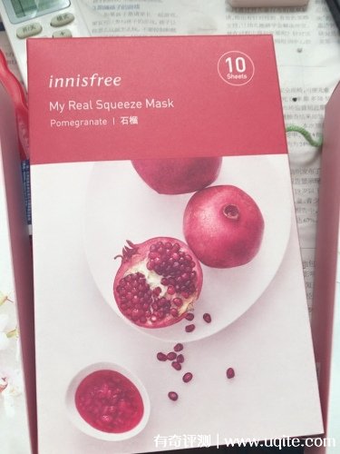 這款面膜有好幾種味道,比如檸檬、蘆薈、黃瓜、大米、石榴之類的,我個(gè)人比較喜歡石榴。