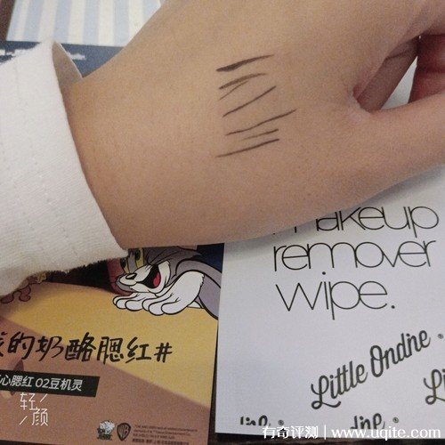 小奧汀這款眼線筆觸感還挺柔軟的,而且筆頭算是細(xì)的了,畫起來很流暢,最令人吃驚的是它可以稱得上秒干了,不像我以前用過的朋友的,還能一邊畫一邊用手擦掉。