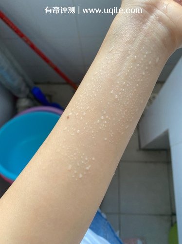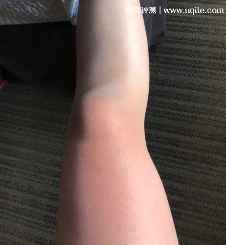 上上周海南室友邀請全寢一起過去玩,我就是用的這款防曬涂身上,去的海邊。我可能對海南的陽光一無所知,只涂了露在外面的部分,然后沒涂的部分就悲劇了,這色差,讓我欲哭無淚。不過也證明了它防曬效果是真的好。