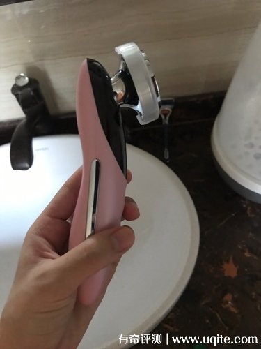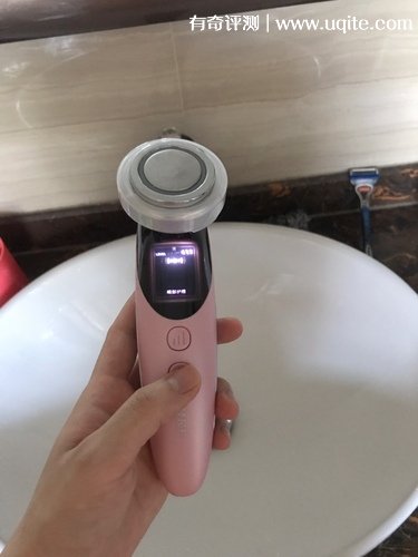 它的提拉模式我還比較常用,敷著面膜的時候用很好,我有點雙下巴,偶爾也會用它往上提拉一下,有一點點效果,就是那種肉好像變緊了的感覺。