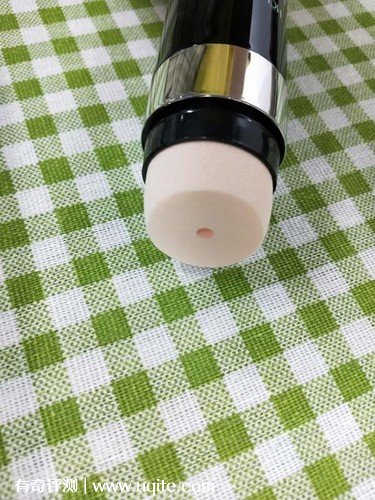 它是像口紅一樣旋轉(zhuǎn)出來的設(shè)計,很方便,出來的部分是海綿加cc霜。海綿摸上去挺舒服的,很有彈性。它的使用辦法就是先把cc點在臉上,然后用海綿涂勻。