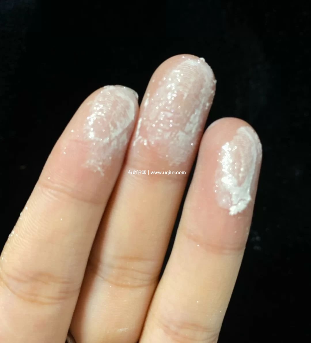 粉質(zhì)是blingbling的,上臉之后顯得臉白了幾個(gè)度,很清透的那種,鼻子附近真的是自帶高光效果(手機(jī)拍不太出來)。