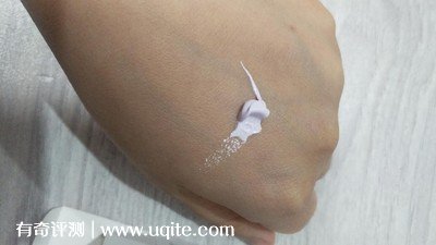 這款隔離有兩個色號,我選的柔情紫,因為我膚色偏黃。實物顏值還挺高的,紫色很清新,里面是尖嘴的開口,輕輕晃動一下就倒出來了,質(zhì)地還比較潤,很好推開。