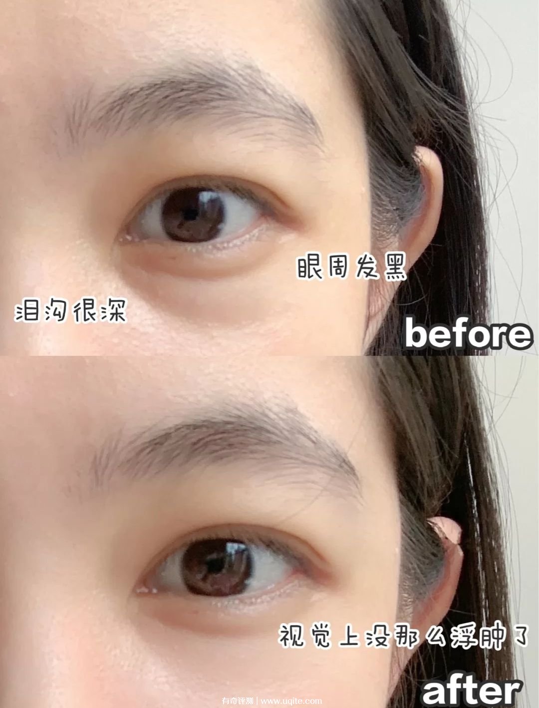 我用的頻率是一天一次,因?yàn)樗阋瞬恍奶?,而且它輕薄,我也不怕它會長脂肪粒(事實(shí)證明確實(shí)不會長)。偶爾敷面膜的時候就把它敷在下面就好了,不會影響。這一盒我目前已經(jīng)用完了,效果還不錯,補(bǔ)水挺好的,關(guān)鍵是我感覺它有點(diǎn)淡化眼袋的作用,而且淚溝看著也沒以前重了。