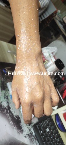 不過可能我身上皮膚干燥些,所以身上用完之后會有點干,得趕緊涂上身體乳??赡芤驗樗牙吓f的角質層弄走了吧,身體乳會比平時好吸收些,抹上去輕輕拍打幾下就干了。