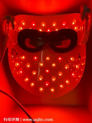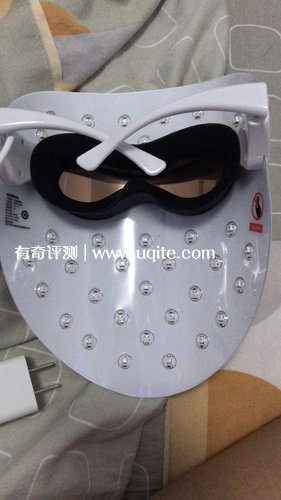 拿到手的第一感覺是有點小重量,是類似眼鏡那種架在耳朵上的。平躺之后有點重,這可能是個小缺點。里面還有個眼罩,是為了保護眼睛設計的,建議大家買這種面罩類型的嫩膚儀,也一定要選有眼罩的,我沒戴上的時候打開過,光線很刺眼。