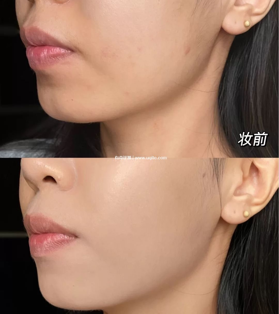 持妝方面也很強(qiáng),我一般周末出去的時(shí)候化妝,中途不會(huì)補(bǔ)妝,這種天氣出汗多,一整天下來也沒見脫妝,膚色還挺均勻的,而且臉上摸著也不干。