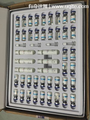澳芙雪富勒烯原液多肽修護凍干粉吸引我的主要是價格,畢竟剛上班,貴的還是挺肉疼的。它里面有6瓶長管,是富勒烯精華,一瓶能用個五六次。一共有20對凍干粉和溶媒液,混合后,一對能用兩三次,整體來說挺耐用的。