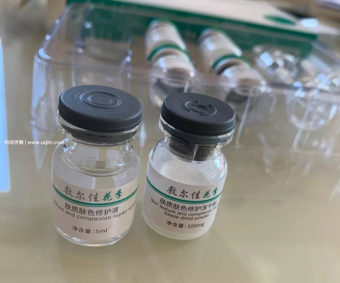 一盒里面有三對(凍干粉需要和溶媒液混合),我一般一對用個五次左右。敷爾佳凍干粉融合后質(zhì)地和精華很像,但是稍微稠一點,所以我的大臉都不需要用到多少。上臉輕輕拍打還是很好吸收的,用完皮膚摸著很水潤,也不油膩。