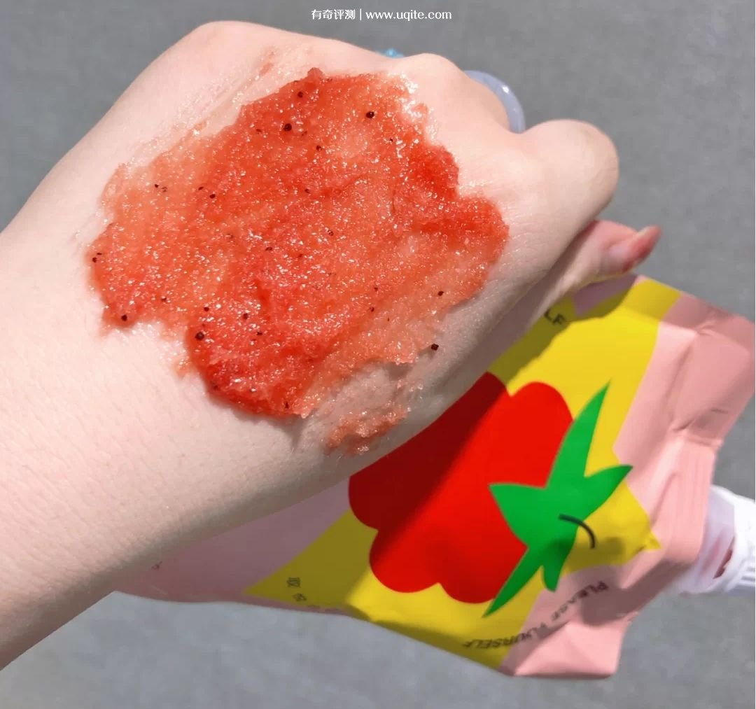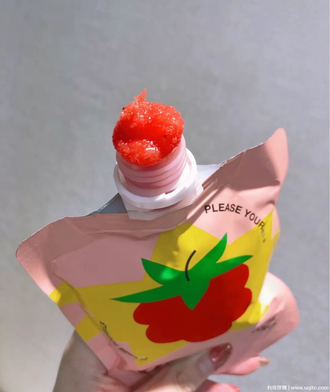 天使計(jì)劃樹莓磨砂膏實(shí)物比我想象中更大袋,一打開,水果味就飄出來了,是還比較自然的樹莓香。擠出來是冰沙質(zhì)地,視覺和嗅覺上雙重誘惑我,我真的超想嘗一嘗味道,當(dāng)天就點(diǎn)了被芝士莓莓奶茶解饞。