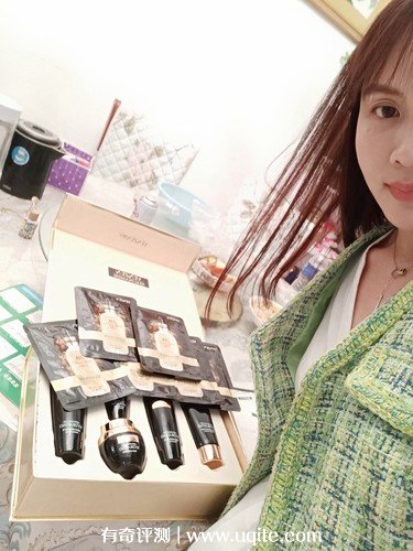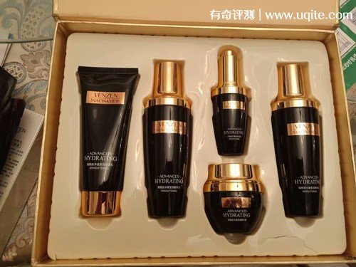 東西收到后,包裝還是挺大氣的,我買的是五件套,里面分別有潔面乳、精華水、肌底液、精華乳和精華霜,商家還有送面膜,看起來還挺不錯(cuò)的樣子。