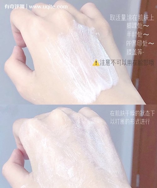 拿到手之后我迫不及待的用了,那么一大罐怎么用都不心疼,身體微微打濕一點,然后再把磨砂膏涂在身上,在揉搓按摩,磨砂顆粒按摩起來一點都不疼,很溫和,手肘和膝蓋處我會按摩一會,那種關(guān)節(jié)位置會比較黑,這款磨砂膏最大的優(yōu)點就是它遇到水就化了,也不需要使用沐浴露了,用完之后,身上還有一股淡淡的奶香味,非常好聞,就感覺自己洗了一個牛奶浴一樣。洗完之后,皮膚比較干的可以涂一層身體乳來保濕,到第二天起來皮膚摸起來也是滑滑的、潤潤的,很有光澤感。
