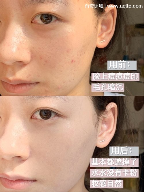 它的遮瑕力也是不錯(cuò)的,我的紅血絲和黑眼圈也可以遮個(gè)七七八八,一層一層疊加也不會(huì)顯得很厚重。因?yàn)槠綍r(shí)工作,我都是帶妝一整天的,在辦公室七八個(gè)小時(shí)下來,也沒有暗沉,空調(diào)吹著臉上也不會(huì)覺得干,也沒有浮粉情況,中午出去吃飯,出汗也沒有什么影響,就是到下午鼻子會(huì)有點(diǎn)出油,用粉餅按一按也不會(huì)影響妝感,基本上一整天都不用怎么補(bǔ)妝。
