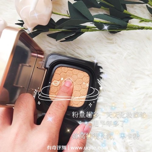 它的外包裝上有一只小貓咪,看著挺可愛的,它的粉芯是雕花蜂巢的設(shè)計,很好控制取粉量,不會浪費(fèi),粉質(zhì)也不比較細(xì)膩水潤,上臉也不會卡粉。然后這款氣墊有兩種色號,膚白色適合皮膚偏黃的妹子,粉白色適合皮膚偏白的妹子。