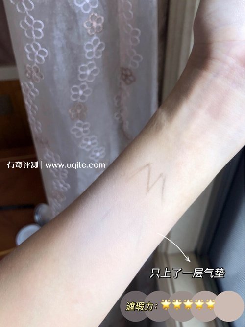 這款氣墊我上臉的感受就是很水潤(rùn),上臉就是那種比較高級(jí)的妝效,一點(diǎn)都不卡皮浮粉,它的遮瑕力也是不錯(cuò)的,我的紅血絲和黑眼圈也可以遮個(gè)七七八八,一層一層疊加也不會(huì)顯得很厚重。因?yàn)槠綍r(shí)工作,我都是帶妝一整天的,在辦公室七八個(gè)小時(shí)下來(lái),也沒(méi)有暗沉。