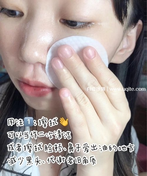 這款Cosrx棉片的膜布我感覺比較厚實,一共有兩面,有紋理的那一面適合擦拭t區(qū)和鼻翼,平滑的那一面可以用來濕敷在長痘痘或者閉口的地方。