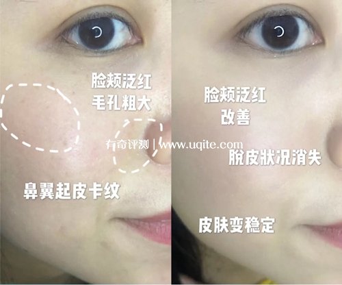 這款精華液我之前過敏的時候用了一個星期了,感覺它的修復效果還是很明顯的,我之前臉上泛紅,紅血絲顏色很深,用完了之后就很明顯的看到紅血絲都消退下去了,毛孔也有所改善,皮膚細膩不少。我用到現(xiàn)在查不過快一個月了吧,維穩(wěn)效果還是很好的,沒有再次出現(xiàn)過敏的癥狀。